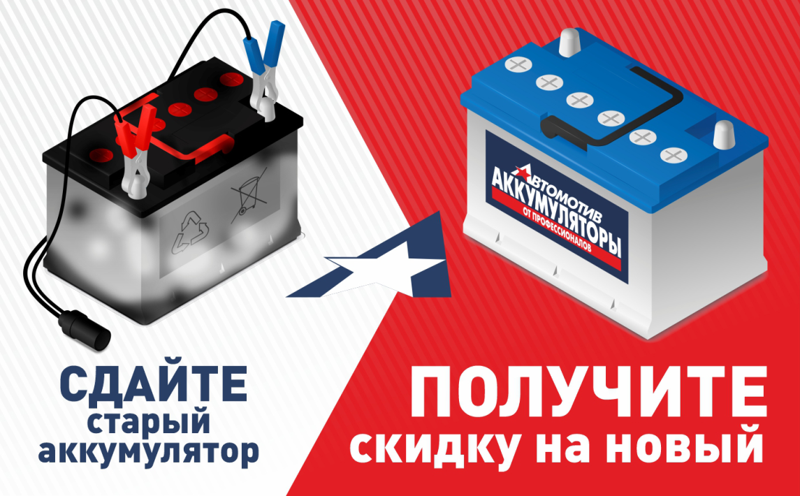 Сдай старый аккумулятор и получи скидку на покупку нового.